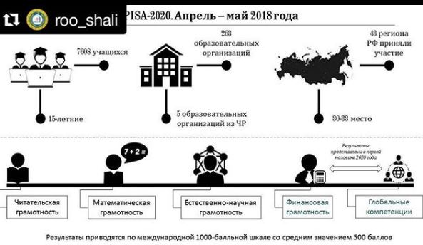 11.01.2020Уважаемые друзья! На сайте Центра оценки качества образования в разделе «Аналитические отчеты» опубликованы результаты участия образовательных организаций Чеченской Республики в Международной программе по оценке образовательных достижений учащихся PISA (Programme for International Student Assessment). Активная ссылка на сайт в описании профиля. #Repost @roo_shali (@get_repost)