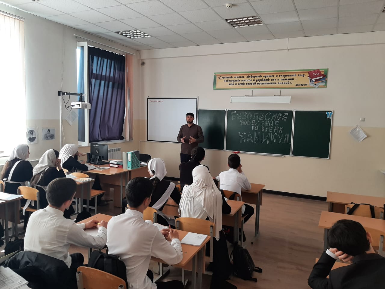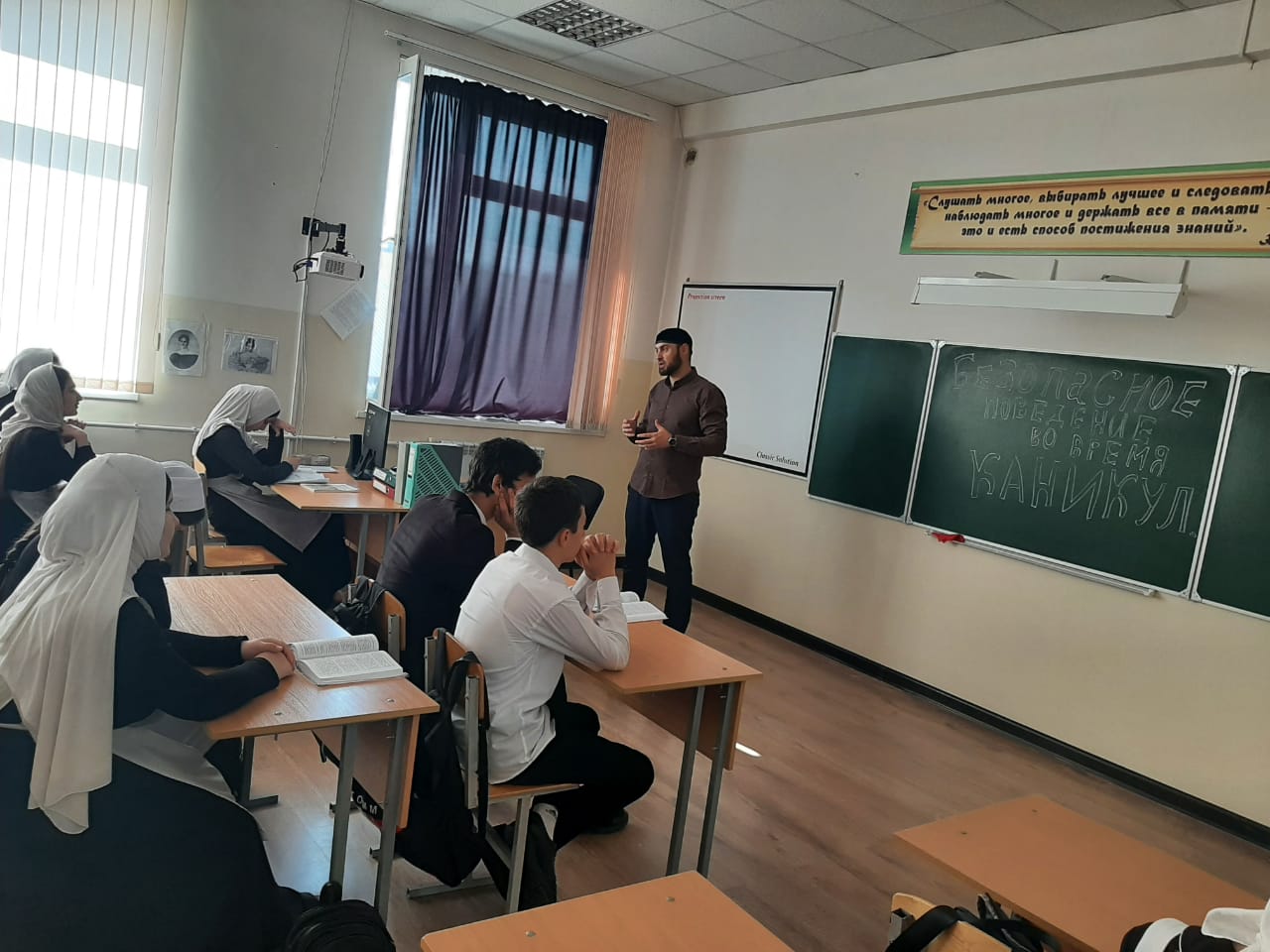 В МБОУ "СОШ 5 с.Гехи" был проведён открытый урок в 9 кл.. Тема: " Безопасное поведение во время каникул" учитель ОБЖ Абаев Х.Р.