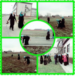 Работники МБОУ "СОШ №5 с. Гехи"провели субботник на территории школы.