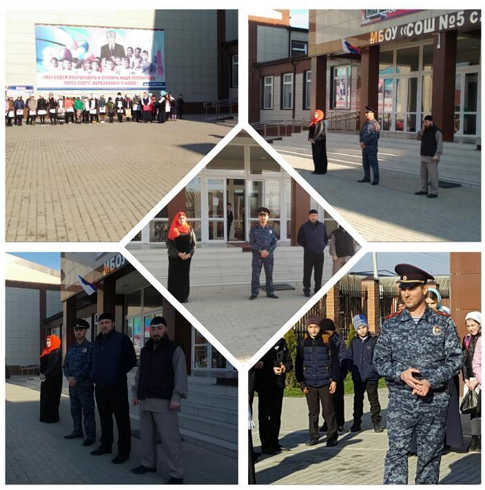 18.03.2017На утренней линейке в МБОУ "СОШ №5 с. Гехи" участковый с.Гехи Эльснукаев Сайд-Селим провел воспитательную беседу по профилактике нарушений дисциплины в школе.
