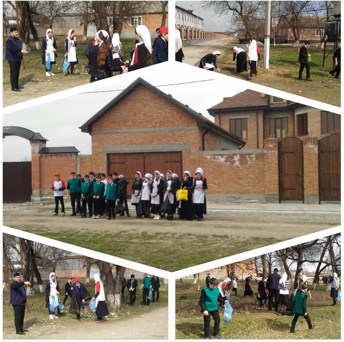 Учащиеся старших классов, активисты МОПД "АХМАТ", "Юные Кадыровцы" МБОУ "СОШ №5 с. Гехи", во главе с директором школы приняли участие в субботнике по очистке территории школы и близлезжащих улиц.