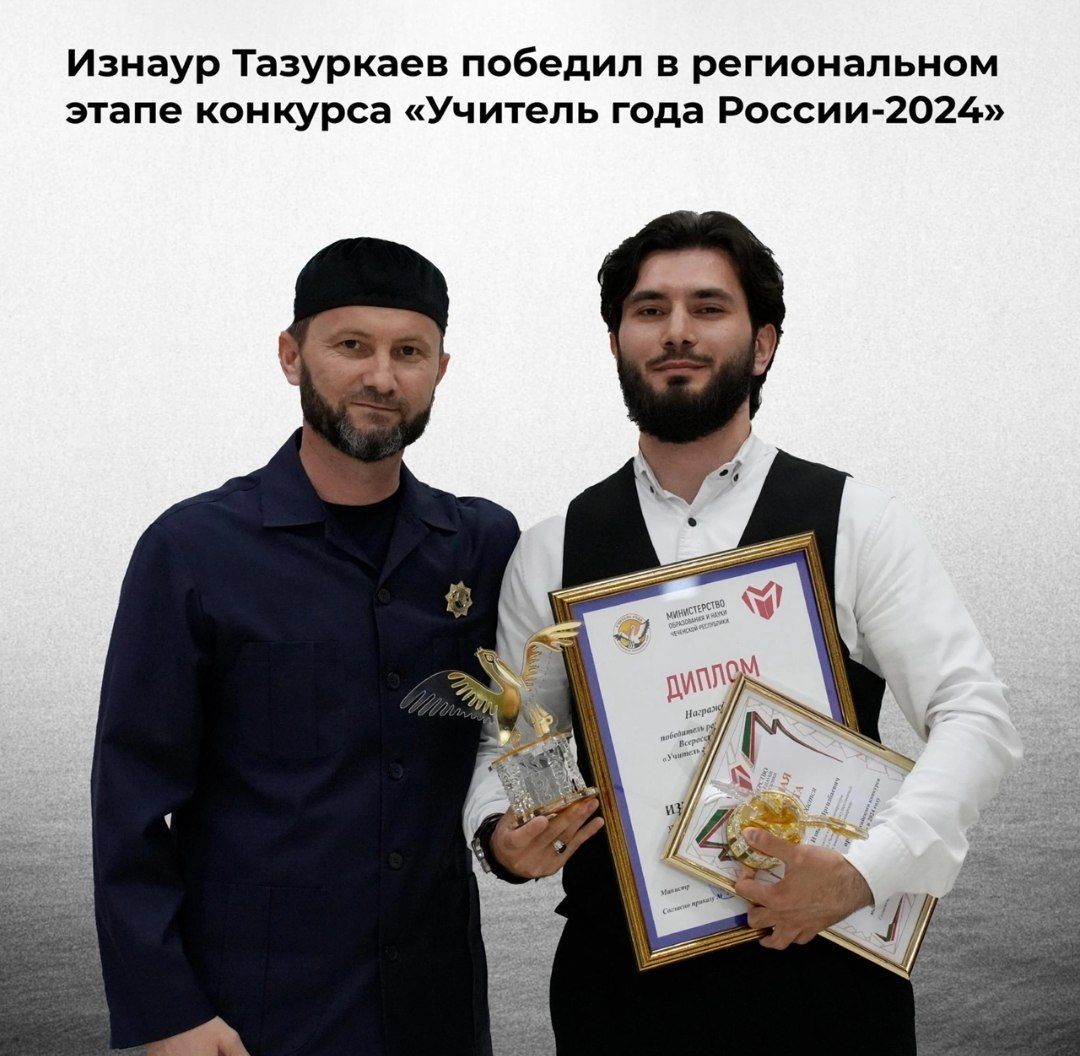Учитель русского языка и литературы лицея ЧГУ им. А.А. Кадырова Изнаур Тазуркаев стал победителем регионального этапа всероссийского конкурса «Учитель года России-2024».