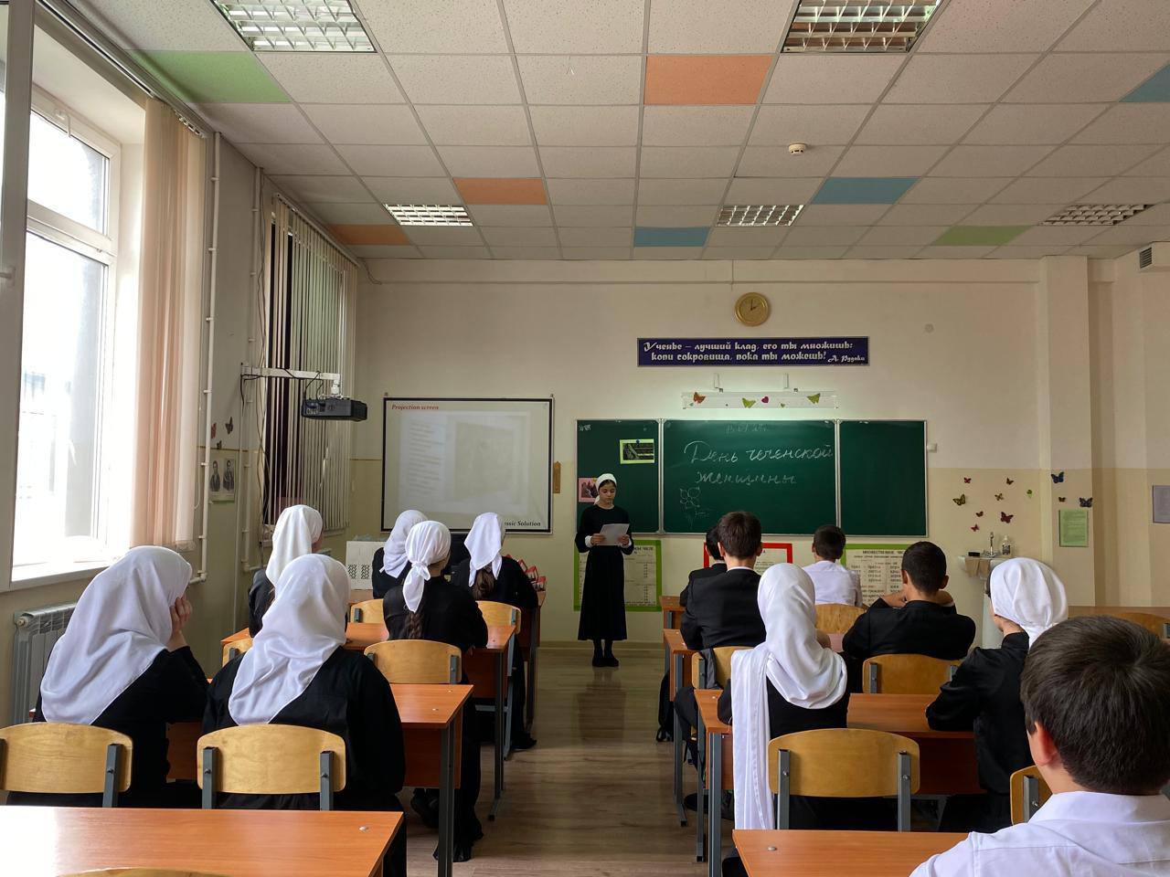 13.09.202413 сентября в 7«Б» классе проведен классный час на тему: «День чеченской женщины».Цель:показать роль женщины в жизни чеченского общества; познакомить с историческими личностями, ознакомить с родом деятельности чеченских женщин; воспитание чувства патриотизма и гордости за свой народ и свою историю.Классный руководитель: Арсанукаева И.Р.