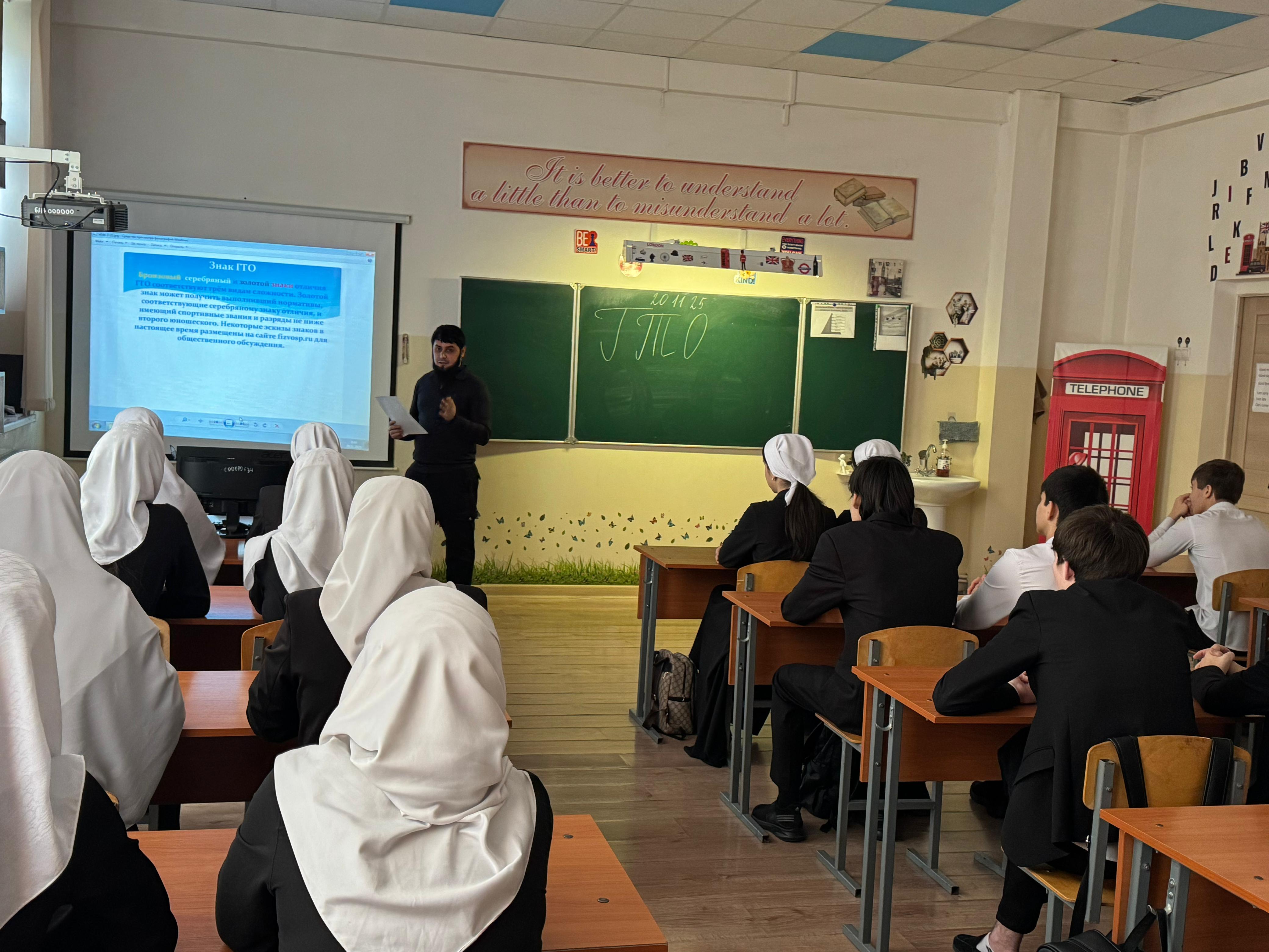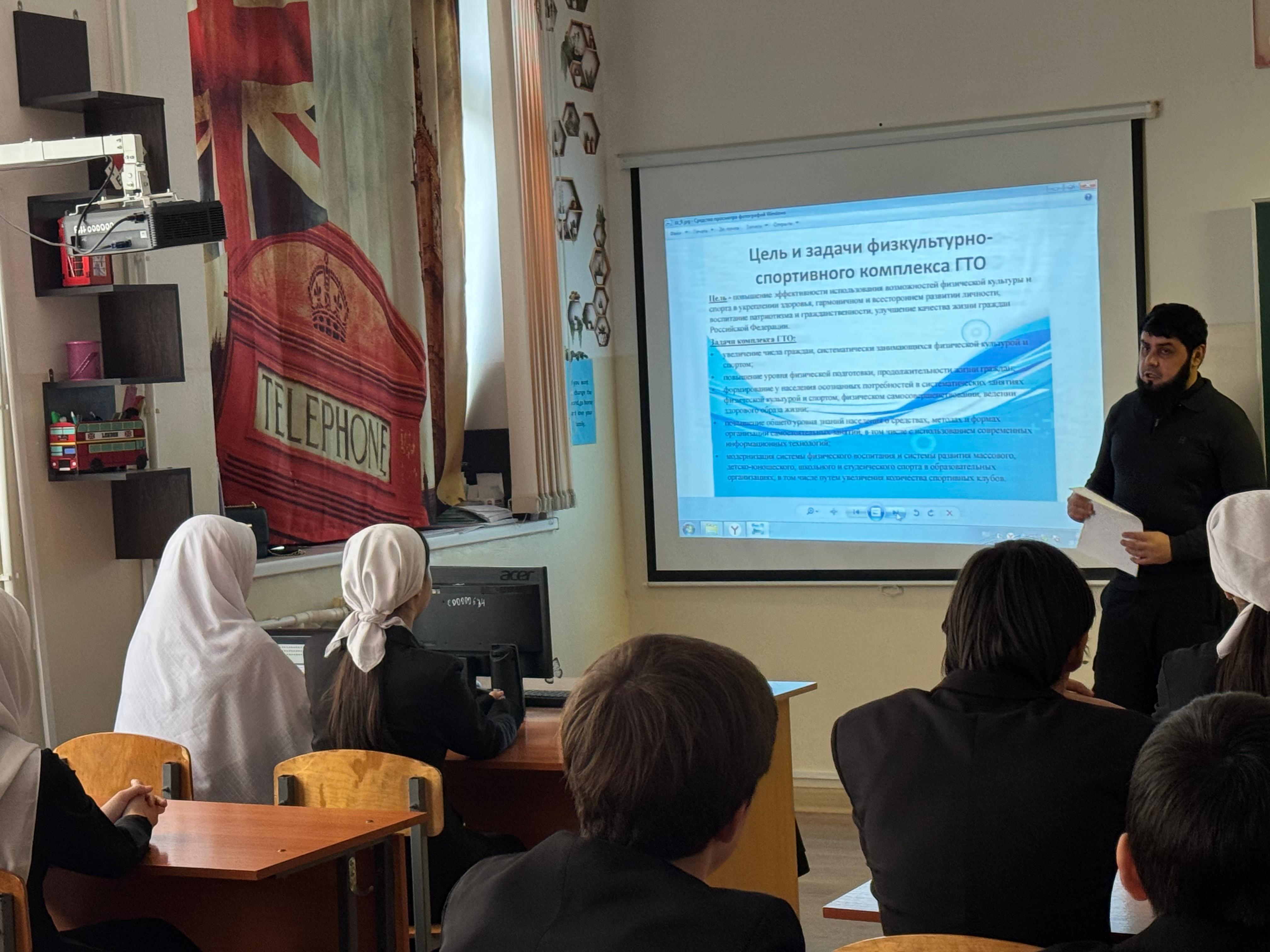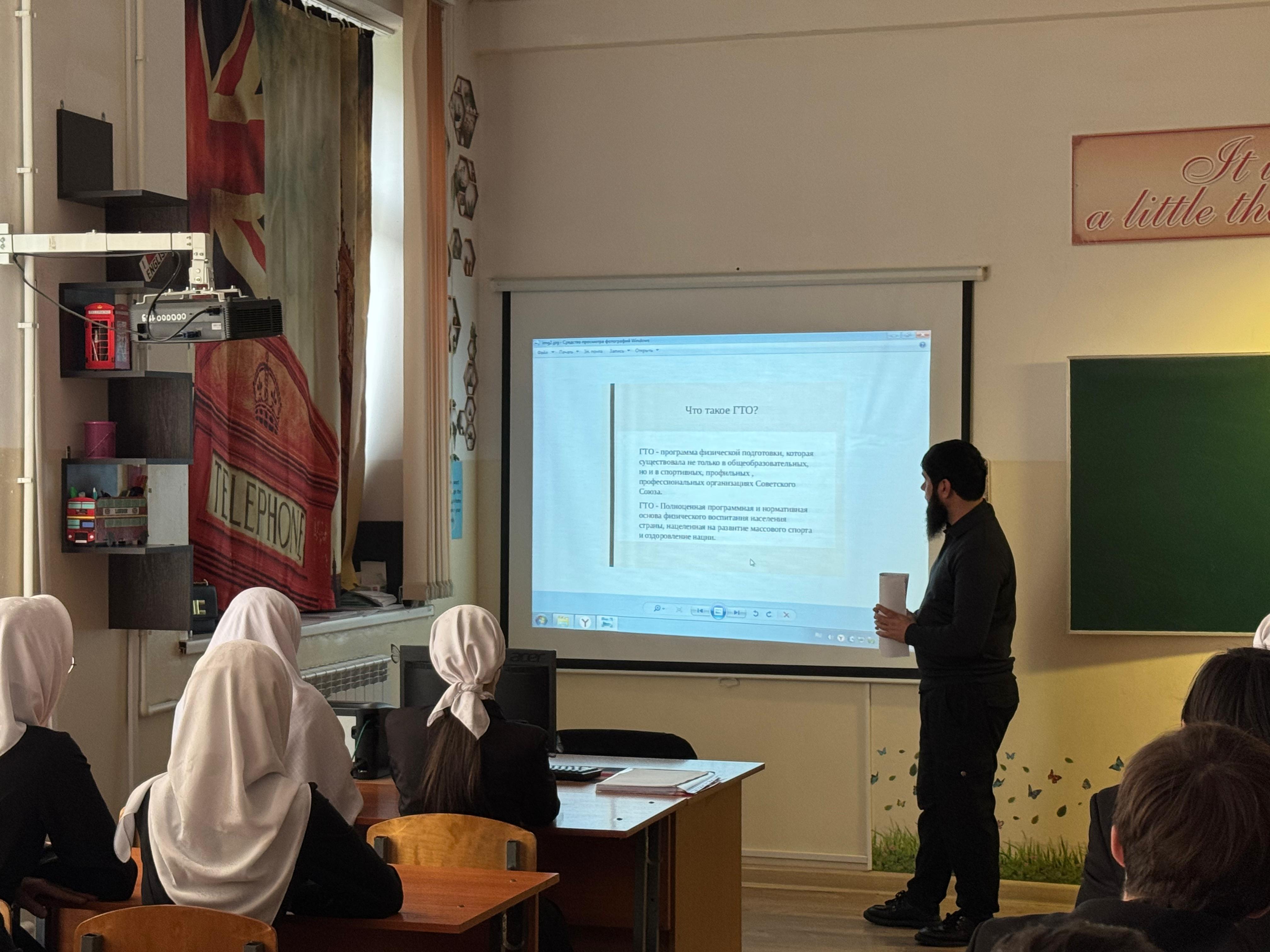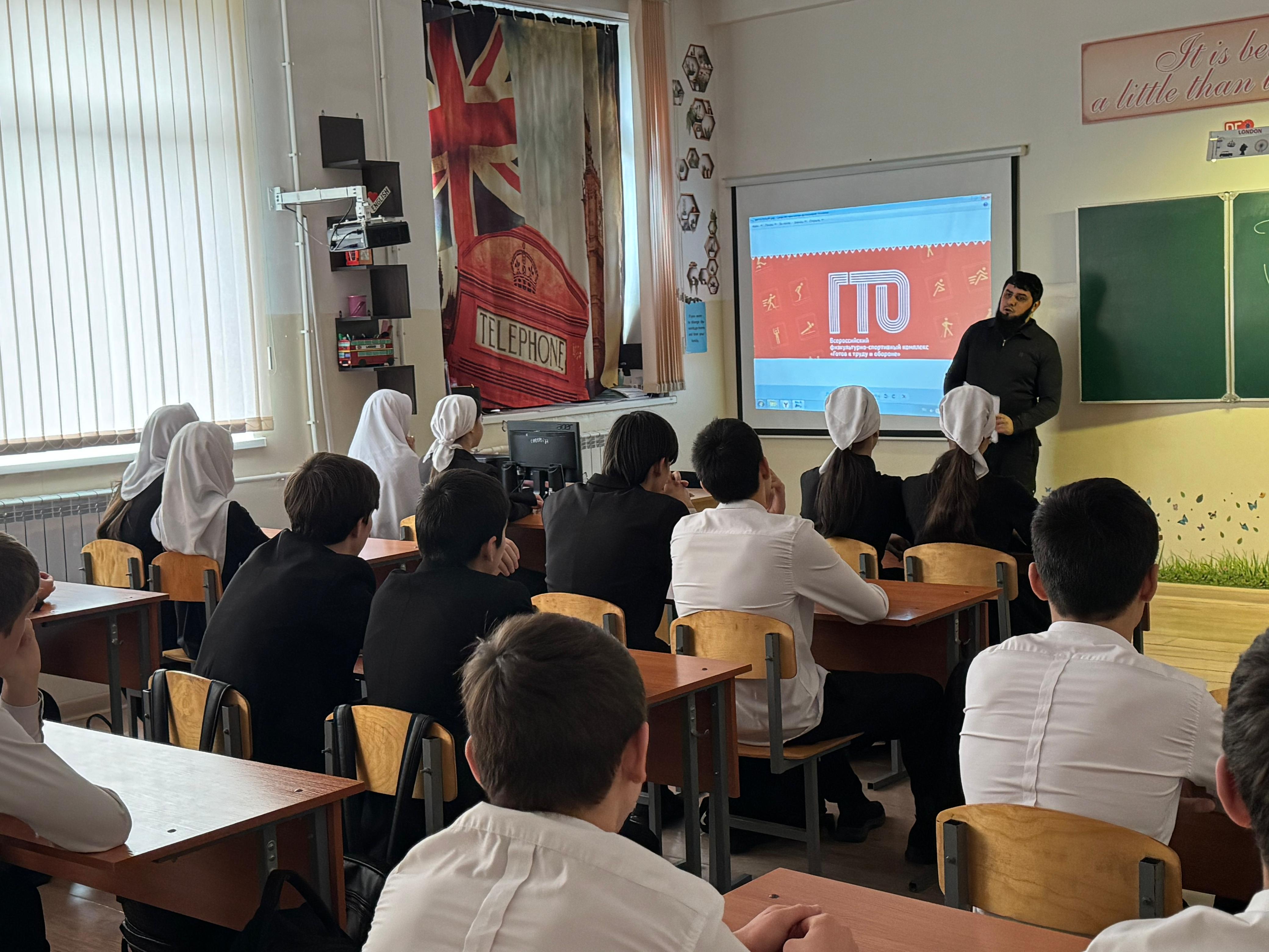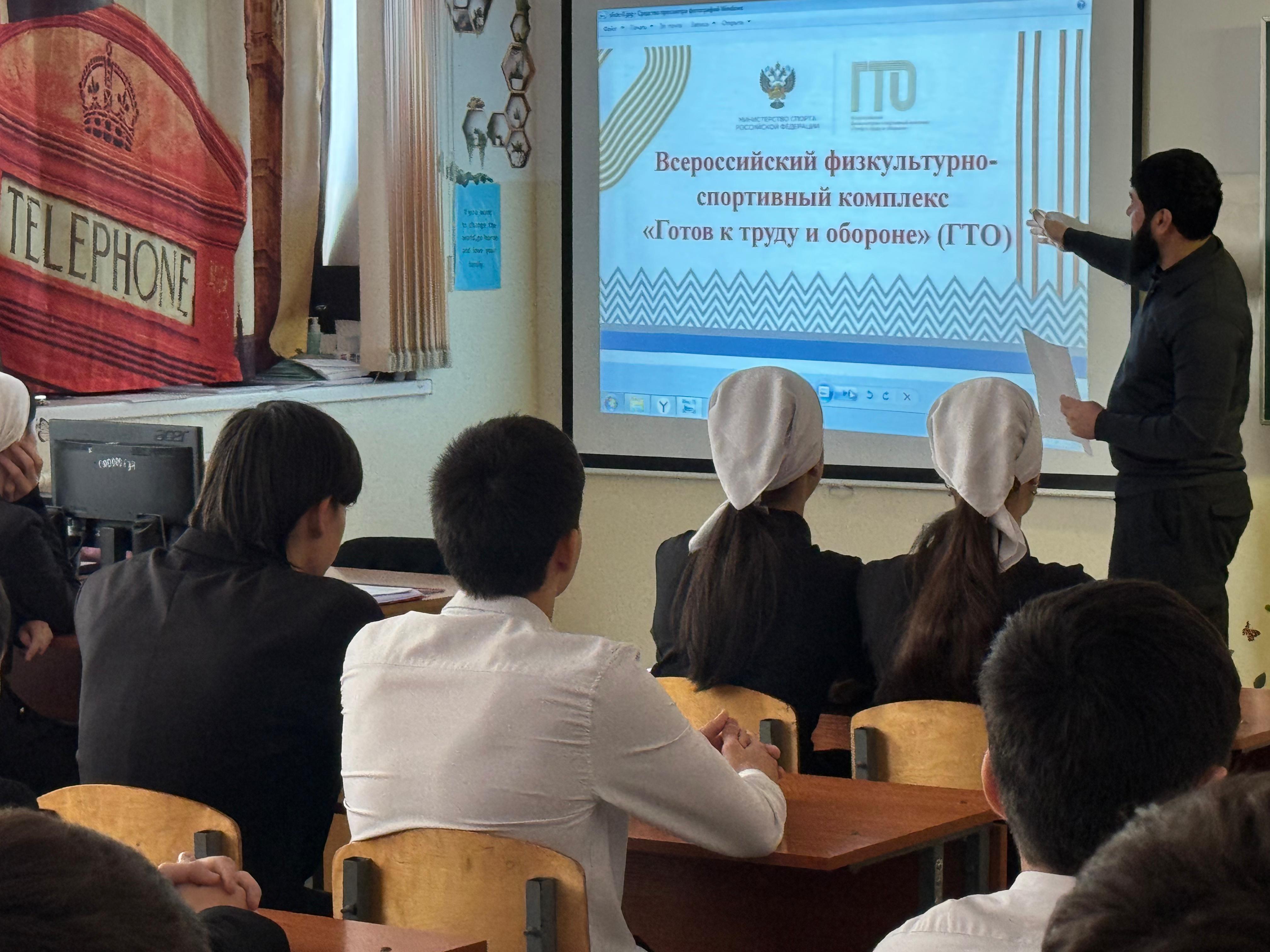 В МБОУ «СОШ№5 с.Гехи» 20.11.2025г состоялось знаменательное событие – урок, посвященный Всероссийскому физкультурно-спортивному комплексу «Готов к труду и обороне» (ГТО).